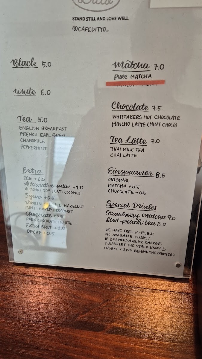 Located at 29A Mount Eden Road, Grafton, Auckland, Cafe Ditto offers a variety of beverages and light food options suitable for coffee breaks, casual dining, and light meals. The menu features several categories centered around specialty drinks and snacks.